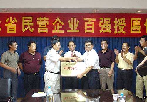 继被评为国内民营上市十强之后,长城汽车再次名列河北省百强民企之首。9月2日,保定市领导宣读了《河北省人民政府关于认定省百强民营企业的通知》,并将牌匾送到该公司。保定市领导在讲话中指出:长城汽车既有务实的作风,又有宏大的志向,还有谦虚、海纳百川的胸怀,经营稳健,一步一个脚印,为保定、河北争了光。