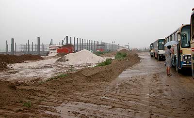 位于西安市北郊泾渭工业园区内的陕汽新基地生产区建设全面展开以来,1200余名建设者头顶烈日,挥汗如雨地奋战在工地上。目前,冲压车间基础处理业已完成,钢梁、网架、预制柱按质按量按时进行;涂装车间预制柱整体告竣,基础正在加紧制作;总装车间基础工程已全部完成,网架、钢柱正在安装;国内最大的试车场已显雏形;研发中心、办公大楼、新产品试制车间等都在积极谋划或开工建设中。