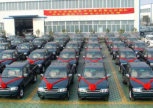 近年来,执法部门、特殊行业公务车选购轿卡呈逐年上升趋势,集团采购的范围也越来越大。自2000年起,长城汽车已连续5年为武警边防总队配备公务用车,累计已达400余辆。