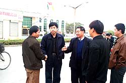 一汽贸易解放河南分公司经理白宇军与当地代 理商一起走访用户