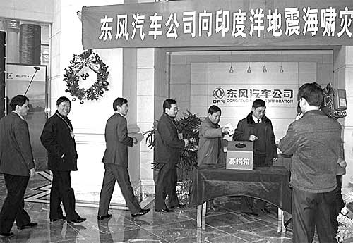 患难见真情,爱心无国界!1月12日,东风公司在武汉总部举行为环印度洋地区地震和海啸灾区募捐活动,向灾区人民伸出援助之手。