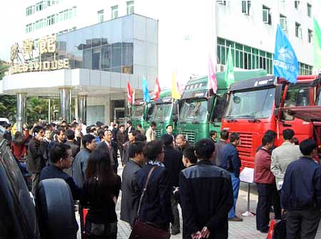 深圳市盐田区政府、深圳市拖车协会、深圳市物流商会的领导及经销商、用户代表和金融界、新闻界的朋友参加了展示会。深圳市盐田区政府领导、深圳市拖车协会会长、深圳市物流商会会长和用户代表作了发言,他们对HOWO重卡给予了充分的肯定,并表示要和中国重汽加强合作,实现双赢。