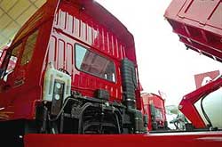首先在整个外形上,霸龙驾驶室的造型成功地运用了工业设计中"视觉错觉"的手法,使其在视觉上给人一种远远大于其实际宽度(2470mm)的感觉。这会使反向行驶的车辆,在更远的地方就会发现这一庞然巨物而更加集中精力小心驾驶,这种视觉效果无形中会给驾乘此车的用户提供了更安全的保障。