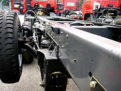 尤其是引进法国先进的车架轻量化设计理念,优化原重型车架结构设计,在提高材质强度的同时,减轻整体重量,例如将霸龙重卡牵引车原有的306mm的双层大梁改为273mm双梁车架,使得整车自重比原来降低半吨左右,但可靠性却显著改善。
