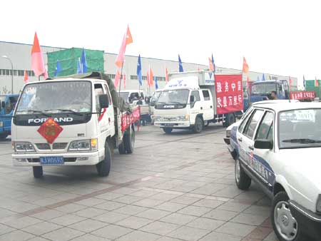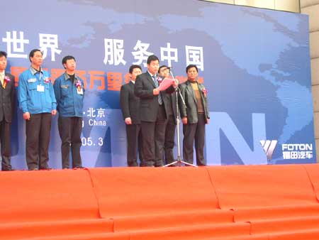 3月3日,位于京北怀柔的北京欧曼重型汽车厂内鼓乐声天,20部装饰一新的服务车辆承载着10队服务小组整装待发,以"服务中国 欧曼万里行"为主题的"3·15大型亲情服务联合走访活动"发车仪式在这里隆重举行。福田汽车营销公司总经理赵维纯、福田汽车欧曼营销公司总经理周亮参与了发车仪式,并发表了重要讲话.