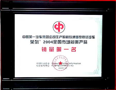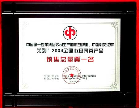 2004年,面对国际国内激烈的市场竞争环境和原材料涨价等因素影响,一汽解放坚持"自主发展,开放合作的"方针,围绕"深化客户关系体系,打造世界级品牌"的营销工作主题,全面实施"品牌形象、营销网络、服务体系、产品研发"等优势整合战略,销售解放中重型载货汽车19.6万辆,市场占有率35.61%。