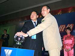 王金玉总经理与孙海平教练共同启动奥铃新品上市仪式