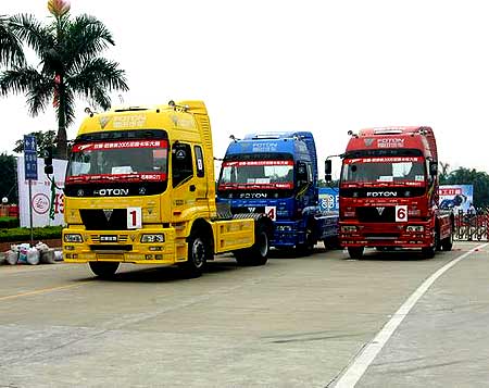 本届卡车大赛唯一指定赛车--欧曼雄狮BJ4181SLFJA重卡在广州分站赛的赛场上威风八面,初一亮相就赢得满堂喝彩。新雄狮不仅外观威武高大、气势恢宏,在操控性能、安全保障、乘坐舒适性等方面都较往届有极大提高,总计24项的内外改装项目使赛车的科技含量大幅提升,新赛车以及为赛车提供配件的上柴动力、天津珀金斯、安凯车桥和青特众力的产品都在广州分站赛赛场上亮相并经受住了大赛的严酷考验,欧曼雄狮不仅成功的完成了比赛任务,也贯彻了欧曼"与世界同步"的理念,整体上彰显出福田汽车"国际化、科技化、人文化"的品牌气质。如此出色的赛车将在接下来的昆明、杭州、青岛、沈阳的分赛场上再战江湖,最后决战北京城。让我们期待新雄狮再传捷报,胜利归来。