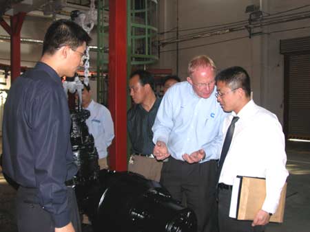 美国康明斯有限公司采购总监薄敬德详细地实地考察了汉德公司具有国际领先、国内一流的生产线。其对汉德公司连续六年来保持平均40%以上的速度表示赞赏。对汉德公司陆续开发出承载轴、斯太尔前轴、450单级桥、485单级桥、第三代军车桥予以称赞。同时相信汉德在未来几年内一定会取得长足的发展,成为国内不可缺少的重型车桥生产基地。