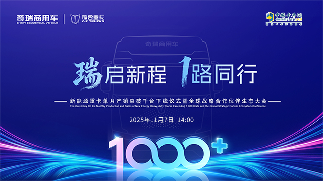 11月7日14:00,瑞启新程 1路同行 新能源重卡单月产销突破千台下线仪式暨全球战略合作伙伴生态大会