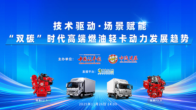 11月26日14:00,“技术驱动,场景赋能,双碳时代高端燃油轻卡动力发展趋势”公益论坛将在重庆大足龙水湖重磅启幕!敬请锁定直播,共探高端燃油轻卡的未来新路径!