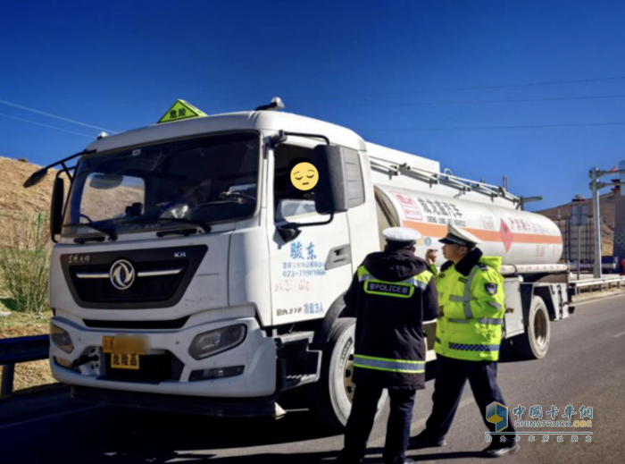 2026年2月6日,西藏岗巴县公安局交通管理大队民警在208省道1055公里200米处路检时,查获驾驶员谭某(准驾车型为B2)驾驶危险品运输车辆未按规定配备押运人员的违法行为。![]()