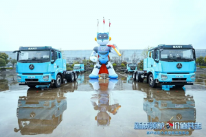 三一重卡用产品回应,SE882——目前行业量产最大电量电动重卡,完成对干线物流场景的深度解构:882kWh,复合工况续航≥570km,四枪1000A超快充,SOC20%-80%需50min;550kW峰值功率、满载最大爬坡度28%,标配EBS+AEB全维度安全配置。
